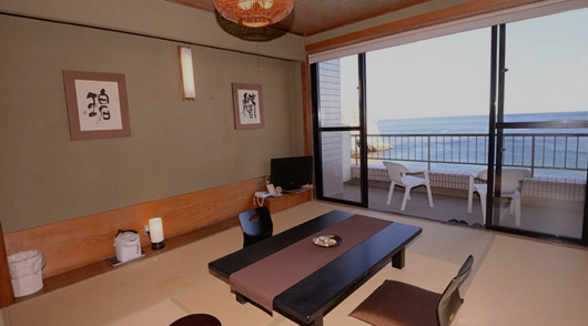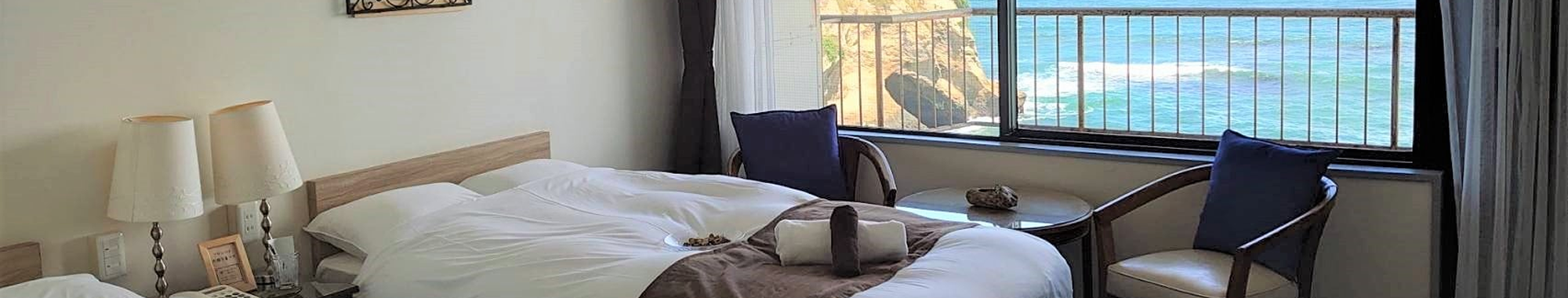 磯原シーサイドホテルのお部屋は、全て真正面が海となり、波音をBGMとしてお楽しみいただける「海辺のお部屋」です。