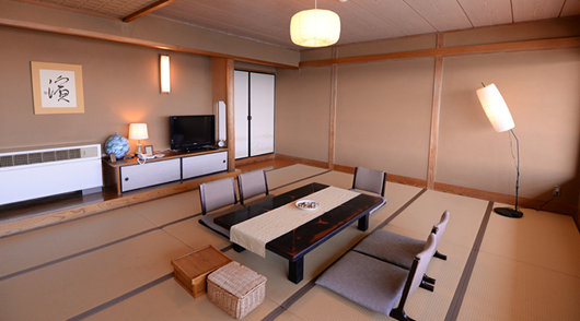 お部屋は主室10畳と15畳の2種類の和室、ダブルベッド・ツインベッドの洋室をご用意しており、お一人さまからご家族・団体様まで幅広く対応いたしております。