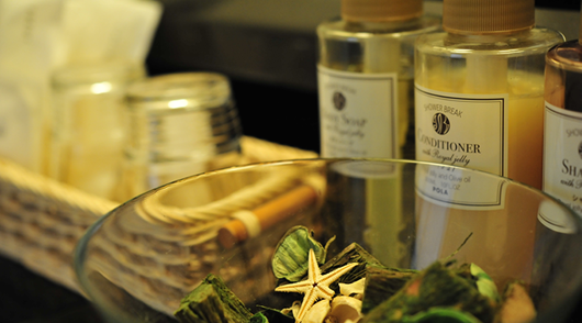 シャンプー・コンディショナー・ボディソープ・女性スキンケア化粧品、白檀オリジナルへちま入り洗顔石鹸、Shick二枚刃髭剃り、バスローブ、バスタオル、フェイスタオル、ハンドタオル、浴衣、珈琲、紅茶、お茶、ソフトドリンク数種、お茶菓子