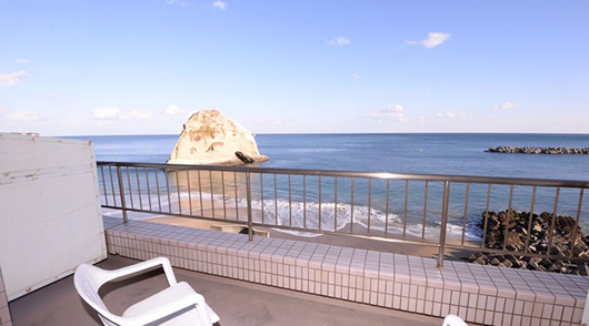 朝日と太平洋の景観を独り占めの広いバルコニー付。2〜3名様でご利用頂けます。